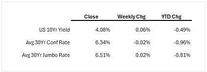 Broadening the lens, US officials met with Ukrainian negotiators over the weekend and are now heading to Moscow to push a revised peace plan. Though there are major sticking points, such as territorial concessions and security guarantees, Putin called it a possible basis for a future deal. As for the Middle East, reports of US-Iran tensions remain stiff. Analysts warn that any escalation could disrupt oil markets, drive inflation higher, and complicate the Federal Reserve's policy path. Both situations may trigger a short-term flight to safety, nudging yields and, by extension, mortgage rates, slightly lower.