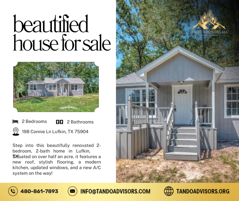 Step into this beautifully renovated 2-bedroom, 2-bathroom home in the heart of Lufkin, TX! Nestled on over half an acre, this charming property boasts a brand-new roof, stylish new flooring, a contemporary kitchen, and updated windows throughout. Plus, enjoy year-round comfort with a new A/C system on the way!