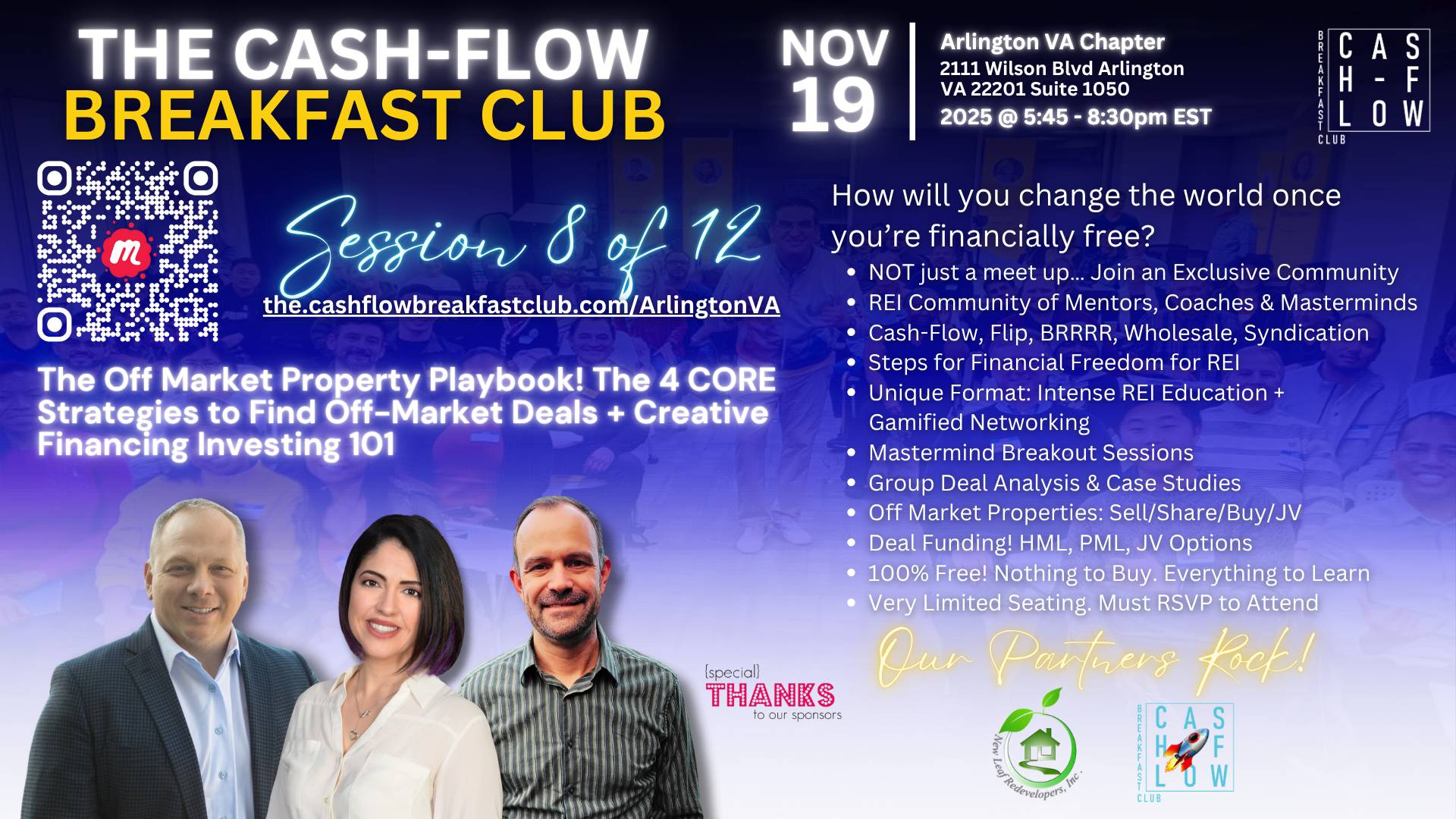 Join other local real estate investor rock stars and secure your spot as a founding member of the Cash-Flow Breakfast Club – Arlington VA chapter!