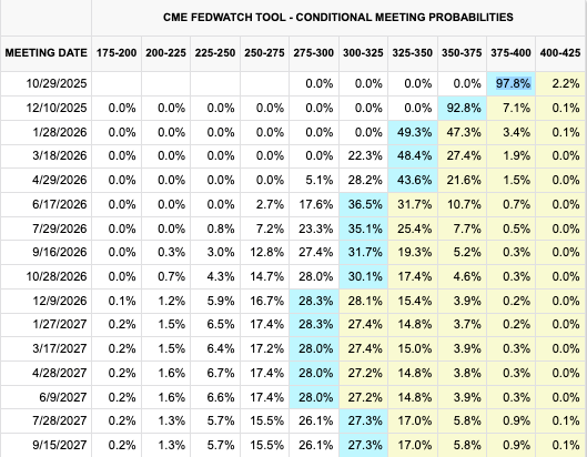 Real-time data would be pretty helpful right about now…There is an overwhelming assumption in the market that they will cut rates. The bond market is pricing in the odds of a Federal Reserve rate cut (.25%) at 97.8%.