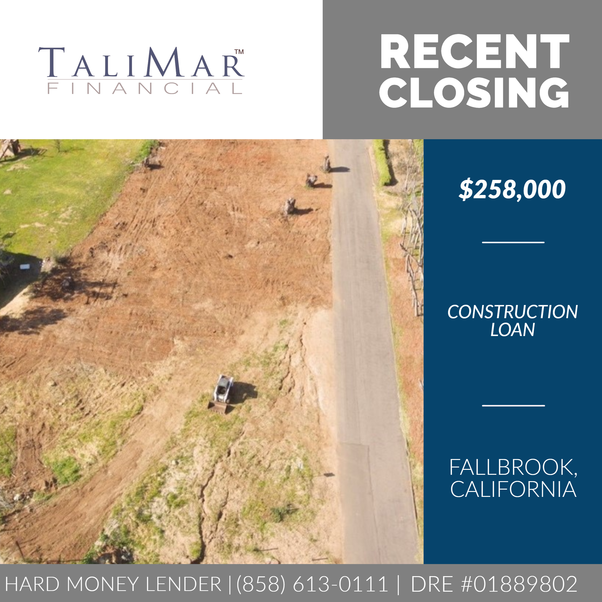 Contact TaliMar today at (858) 613-0111 with your loan request or visit talimarfinancial.com to learn more about our hard money lending programs.